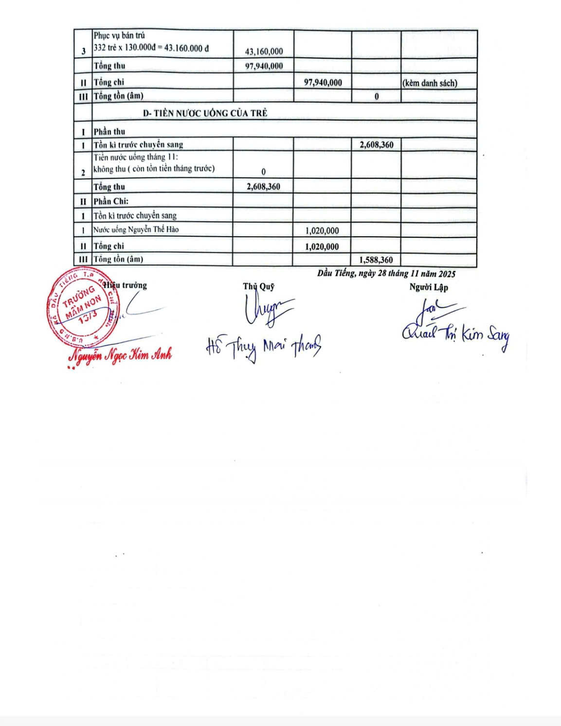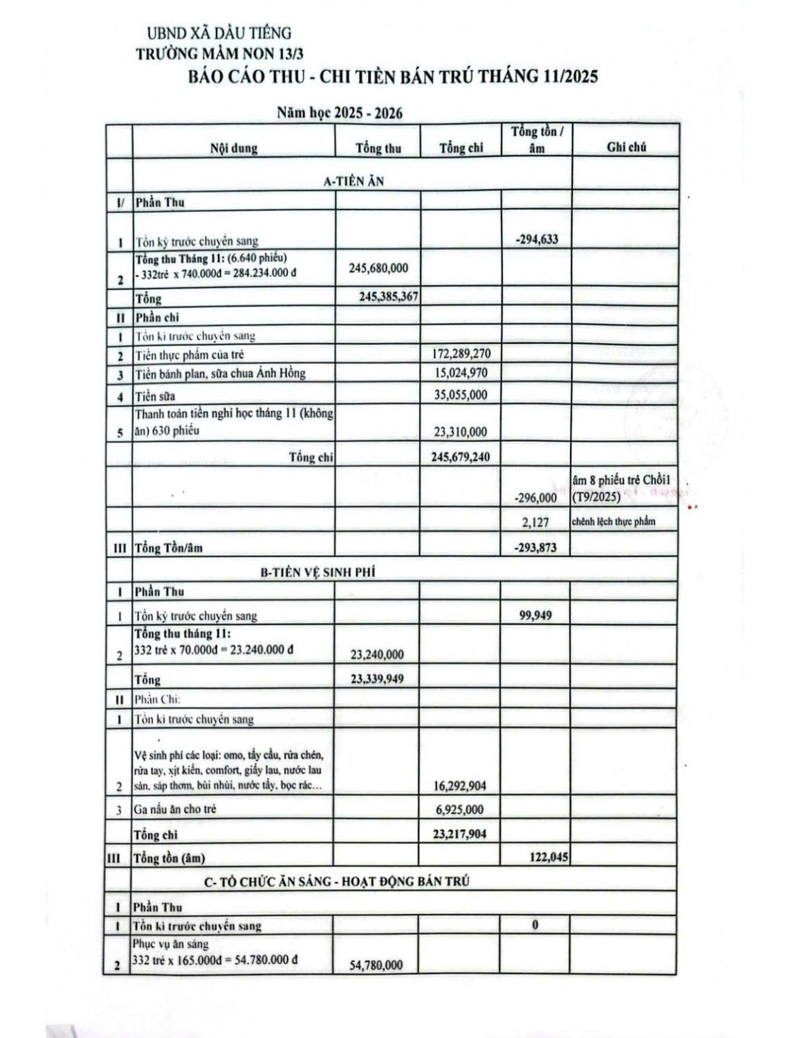 Báo cáo bán trú tháng 11.2025 (NH: 25-26)
